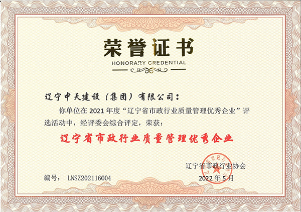 企業(yè)先后榮獲“全國優(yōu)秀施工企業(yè)”、 “中國AAA級信用企業(yè)”、“全國保障性安居工程建設(shè)勞動競賽先進(jìn)單位”、“遼寧省最受尊敬企業(yè)”、“遼寧省優(yōu)秀建筑業(yè)企業(yè)”、“遼寧省工程建設(shè)質(zhì)量管理優(yōu)秀企業(yè)”、 “遼寧省守合同、重信用企業(yè)”、遼寧省“AAA級信用企業(yè)”、 “撫順市安全生產(chǎn)先進(jìn)單位、紅旗單位”、“撫順市安康杯競賽先進(jìn)集體”等多項殊榮。